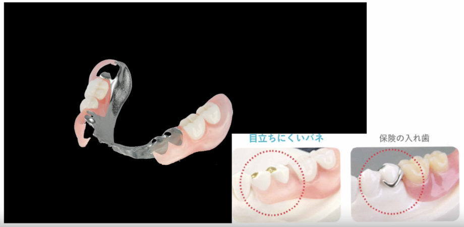 金属のバネを使用しないため、見た目が美しいだけでなく、痛くなりにくく、噛みやすいのが特徴です。